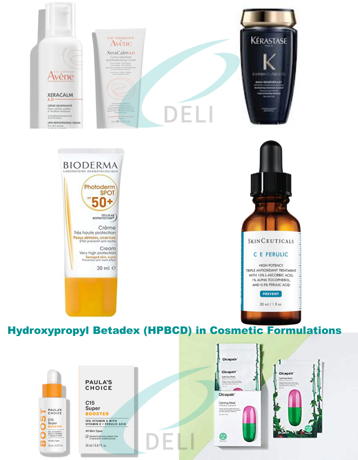 Понастоящем много козметични марки и грижи за кожата не разкриват подробно специфичните съставки (например, хидроксипропил бетациклодекстрин, HPBCD), използвани в своите формулировки, което прави по -трудно да се изброят окончателно всички конкретни продукти, които използват HPBCD. Въпреки това, въз основа на публично достъпна литература, патенти и източници на индустрията, следните са някои ясно или много вероятни категории и примери за козметика и продукти за грижа за кожата, които използват HPBCD: