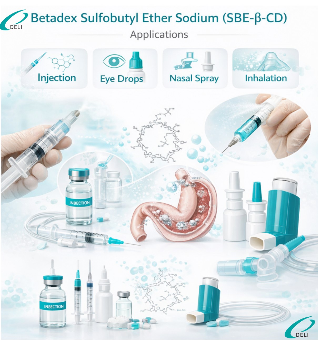 Бетадекс сулфобутил етер натрий за инжектиране се прилага главно в неорални фармацевтични дозирани форми, където високата разтворимост и безопасността са критични. Той се използва широко в инжекционни разтвори за подобряване на разтворимостта във вода и поддържане на яснотата и стабилността на формулировката по време на съхранение и приложение.